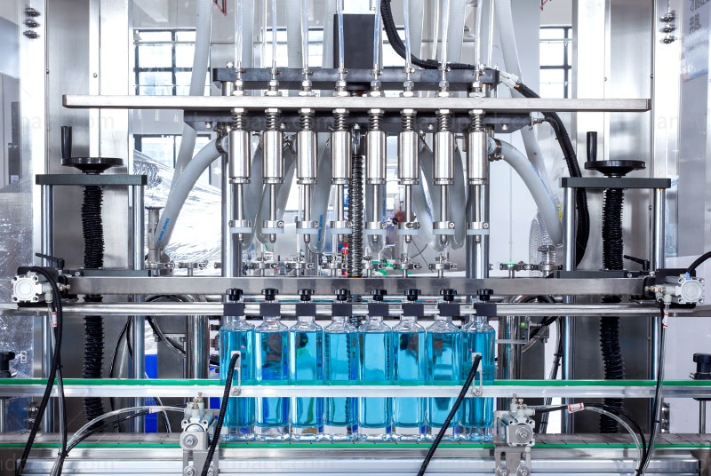 This 8-head pesticide filling machine is widely used for packaging a broad range of low- to medium-viscosity liquids across multiple industries. It is suitable for agrochemical products such as liquid fertilizers, laundry detergent, hand wash, and dishwashing liquid; and various food-grade liquids such as soy sauce, vinegar, cooking wine, and other thin sauces.