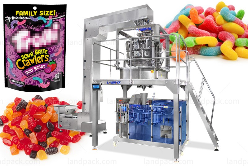 It supports multiple pouch formats, including stand-up pouches, zipper pouches, flat pouches, and spouted pouches. These flexible packaging types are ideal for gummy candies, offering excellent sealing integrity, product visibility, and portability.