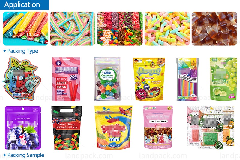 The Gummy Candy Packaging Machine Rotary Pouch Filling Machine is compatible with a wide range of pre-made pouch styles, offering flexibility for different market needs and product presentations. It supports stand-up pouches, M-shape pouches, flat pouches, and zipper bags, ensuring each gummy product is perfectly sealed and visually appealing on the shelf.