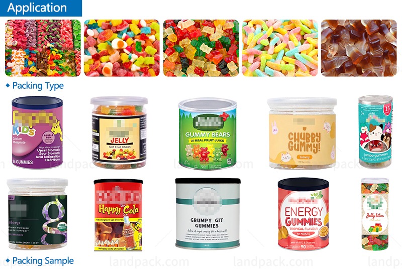 The Gummy Cans Filling Seaming Machine Line is designed to handle a wide range of bottles and cans made from different materials, offering full flexibility for various production needs. It is compatible with plastic bottles, tin cans, aluminum cans, glass jars, and PET containers, making it ideal for different packaging preferences and market requirements. This gummy filling machine can easily adapt to round, square, or customized container shapes, ensuring stable feeding, precise filling, and tight sealing. Whether for metal cans requiring seaming or plastic bottles with pressed caps, the line delivers perfect compatibility and high-speed performance.