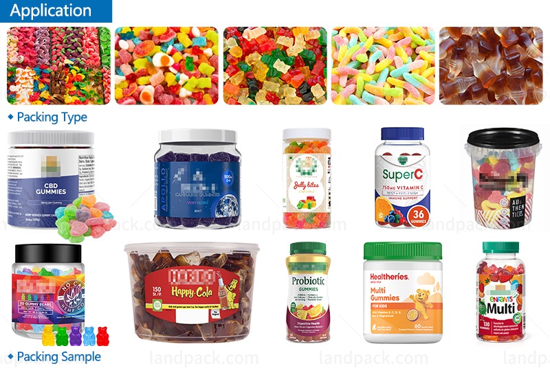 The Landpack gummy filling machine line is designed for flexible container compatibility, easily handling both bottles and buckets. Whether you are packaging small individual gummy bottles for retail or larger buckets for bulk distribution, the machine ensures precise filling, consistent weight, and secure sealing for each container.