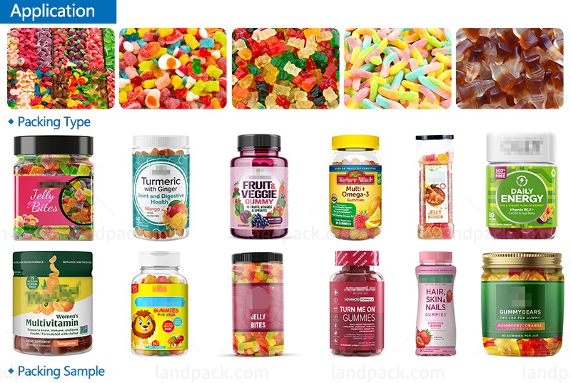 This Vitamin Gummy Packaging Machine Line is designed to accommodate the wide variety of containers and types. It can be used to plastic bottles (PET and PP) and glass bottles and aluminum cans, providing an array of options for various product needs. If you choose to use square, round or custom bottles, the system will provide an easy bottle feeding process, precise weighing, and fast sealing -- which can produce thirty bottles in a minute, with stability and precision.