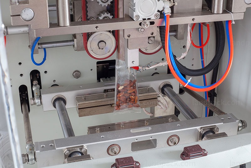 This nuts packing machine supports common bag formats such as pillow bag, gusset bag, back sealing bag, three-side seal bag, etc., in PET/PE, OPP/CPP, and aluminum foil material.
