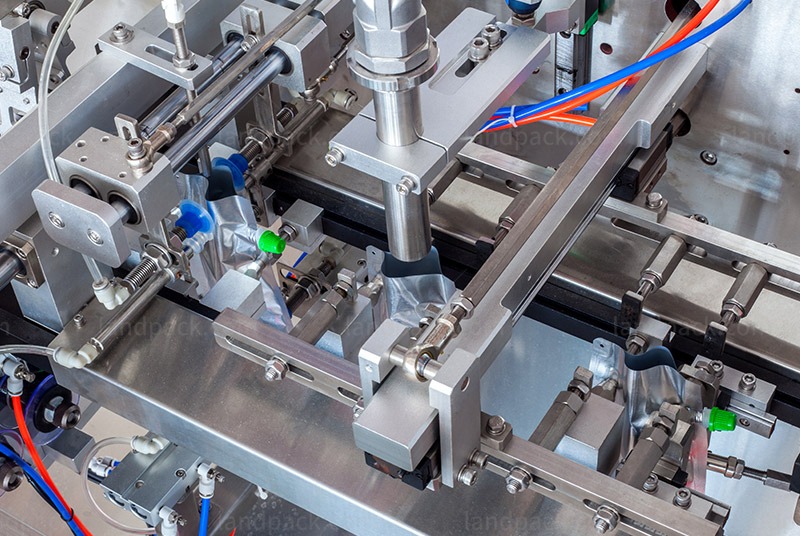 5. Nozzle Filling Process: The filling nozzle moves smoothly into position to reduce splashing and avoid product contact with the sealing area.